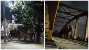 हरिद्वार के रिहायशी इलाके में जंगली हाथियों के घुसने का सिलसिला लगातार जारी है. कनखल क्षेत्र में हाथियों के एक झुंड वीडियो सोशल मीडिया पर तेजी से वायरल हो रहा है. बताया जा रहा है कि यह वीडियो बिजली घर के नजदीक गंगा पर बने पुल का है, जहां कुछ हाथी तारबाड़ को तोड़कर आबादी वाले इलाके में घुस आए. काफी देर तक हाथी उस इलाके में घूमते रहे। हाथियों को देखकर लोगों में अफरा तफरी मच गई. वायरल वीडियो में साफ तौर से देखा जा सकता है कि हाथियों का झुंड बेखौफ होकर रिहायशी इलाके में पहुंच गया.