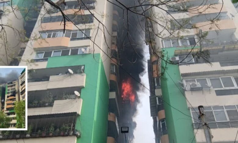 गाजियाबाद में 13 मंजिला इमारत के 8वें फ्लोर पर लगी भीषण आग, कई लोग फंसे