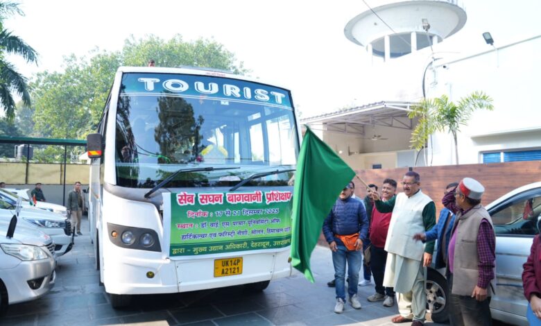 देहरादून: प्रदेश के कृषि मंत्री गणेश जोशी ने बुधवार को अपने कैंप कार्यालय से जिला योजना के अंतर्गत जनपद देहरादून के 28 कृषकों और दो उद्यान कार्मिकों के दल को 5 दिवसीय सेब एवं कीवी उत्पादन प्रशिक्षण के लिए डॉ. वाई.एस. परमार कृषि एवं वानिकी विश्वविद्यालय, नौणी–सोलन (हिमाचल प्रदेश) के लिए हरी झंडी दिखाकर रवाना किया।