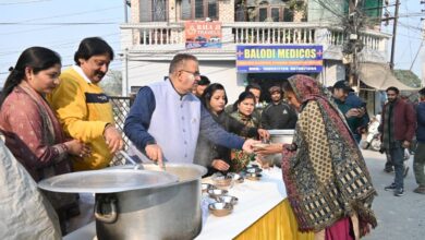 मकर संक्रांति पर आयोजित कार्यक्रम में प्रतिभाग कर लोगों को प्रसाद स्वरूप खिचड़ी वितरण करते कैबिनेट मंत्री गणेश जोशी