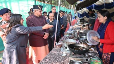 23वीं वाहिनी भारत तिब्बत सीमा पुलिस बल द्वारा आयोजित मिलेट्स (श्री अन्न) प्रर्दशनी का रिबन काटकर शुभारंभ करते कृषि मंत्री गणेश जोशी