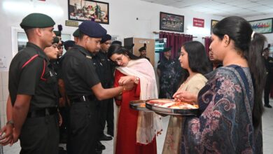 भाजयुमो राष्ट्रीय उपाध्यक्ष नेहा जोशी ने सेना के जवानों की कलाई पर बांधा रक्षासूत्र