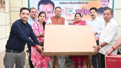 रक्षाबंधन के पावन अवसर पर कैबिनेट मंत्री गणेश जोशी की कलाई पर रक्षासूत्र बांधती उत्तराखंड पुलिस की बहिनें