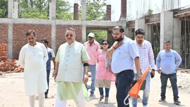 गढी कैंट में ₹12 करोड़ की लागत से निर्माणाधीन सामुदायिक भवन का निरीक्षण करते कैबिनेट मंत्री गणेश जोशी