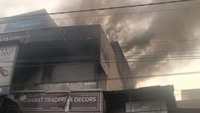 पर्दे की दुकान में लगी भीषण आग, चपेट में शूज स्टोर भी आया, कड़ी मशक्कत के बाद पाया जा सका काबू