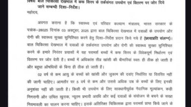 बच्चों में कफ सिरप के उपयोग पर केंद्र की एडवाइजरी को सभी जिलों में सख्ती से लागू करने के आदेश