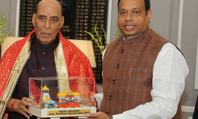 देहरादून/नई दिल्ली, 28 अक्टूबर: बदरीनाथ-केदारनाथ मंदिर समिति (बीकेटीसी) के अध्यक्ष हेमंत द्विवेदी ने सोमवार शाम को देश के रक्षा मंत्री एवं भाजपा के पूर्व राष्ट्रीय अध्यक्ष राजनाथ सिंह से दिल्ली स्थित आवास पर शिष्टाचार भेंट की। इस दौरान उन्होंने बदरीनाथ और केदारनाथ धाम का प्रसाद, अंगवस्त्र एवं स्मृति चिह्न भेंट किया।