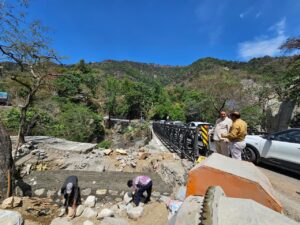 कैबिनेट मंत्री गणेश जोशी ने आज मसूरी-देहरादून मार्ग पर पर्यटन सीजन को ध्यान में रखते हुए निर्माणाधीन वैली ब्रिज के निर्माण कार्य का स्थलीय निरीक्षण किया। इस दौरान उन्होंने निर्माण कार्यों की प्रगति का जायजा लेते हुए संबंधित अधिकारियों को आवश्यक दिशा-निर्देश दिए।गौरतलब है कि कुछ दिन पहले कैबिनेट मंत्री गणेश जोशी ने लोक निर्माण विभाग एवं वन विभाग के अधिकारियों के साथ बैठक कर पर्यटन सीजन के दौरान यातायात व्यवस्था को सुचारू बनाए रखने के उद्देश्य से स्थायी पुल के निर्माण से पहले एक ओर अस्थायी वैली ब्रिज बनाने के निर्देश दिए थे। इसी क्रम में आज उन्होंने मौके पर पहुंचकर निर्माण कार्यों का निरीक्षण किया।