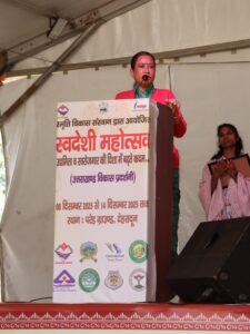 संस्कृति साहित्य एवं कला परिषद की उपाध्यक्ष मधु भट्ट ने कहा कि स्वदेशी की अलख गांव से लेकर शहरों तक जगानी है। जिस दिशा में हमारी सरकार बेहद ही कुशल कार्य कर भी रही है। उन्होंने कहा कि अपनी संस्कृति और बोली भाषा को भी अपने आचरण में लाना होगा ताकि आने वाली पीढ़ी इस स्वदेशी भावना से प्रेरित रहे।