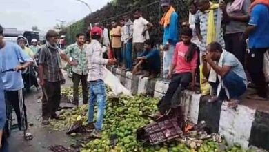 देहरादून: रिस्पना पुल पर आम से भरा ट्रक पलटा, सड़क पर मची आम लूटने की होड़