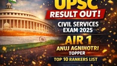 यूपीएससी सिविल सेवा परीक्षा 2025 का अंतिम परिणाम जारी, अनुज अग्निहोत्री बने ऑल इंडिया टॉपर.
