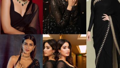 काली साड़ी का आकर्षण कालातीत है, और कुछ अभिनेत्रियों ने सहजता से इस क्लासिक लुक को नई ऊंचाइयों तक पहुंचाया…