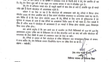 स्वास्थ्य सचिव डॉ आर राजेश कुमार ने डेंगू रोग के इलाज के लिए प्लेटलेट्स के समुचित प्रबंधन के लिए आईएमए अध्यक्ष को लिखा पत्र