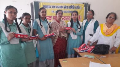 हाइजीन से संबंधित जानकारी प्रदान करने के साथ साथ सेनेटरी नैपकिन भी बांटे