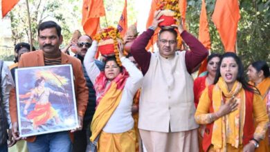 श्री राम जन्मभूमि अयोध्या पूजित अक्षत कलश शोभा यात्रा कार्यक्रम में प्रतिभाग करते कैबिनेट मंत्री गणेश जोशी