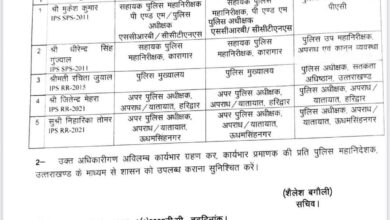 भारतीय पुलिस सेवा (IPS) के कई अधिकारियों के तबादले किए गए हैं। सरकार द्वारा जारी आदेश के अनुसार, जनहित और…