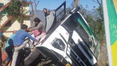 टिहरी में सवारियों से भरी बस दुर्घटनाग्रस्त, पेड़ पर अटकने से टला बड़ा हादसा, 30 यात्रियों की बची जान.