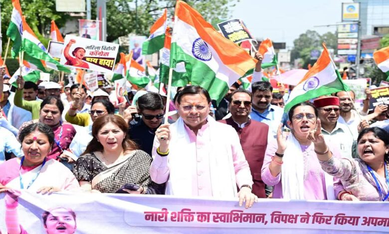 रैली के बाद मुख्यमंत्री के नेतृत्व में पदयात्रा भी निकाली गई, जिसमें बड़ी संख्या में महिलाओं ने हिस्सा लिया और महिला सम्मान के समर्थन में अपनी आवाज बुलंद की.