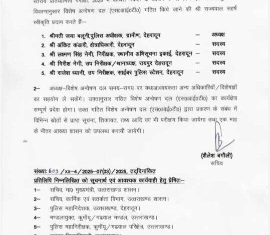 UKSSSC की ओर से कार्मिक विभाग को भेजे गए पत्र में स्नातक स्तरीय परीक्षा (21 सितंबर 2025) के दौरान हरिद्वार के आदर्श बाल सदन इंटर कॉलेज परीक्षा केंद्र (कोड-1302) पर गंभीर लापरवाही की शिकायत की गई थी। परीक्षा के दौरान एक अभ्यर्थी द्वारा प्रश्नपत्र के 12 प्रश्न मोबाइल से बाहर भेजे गए। आयोग ने स्पष्ट किया कि परीक्षा केंद्र पर तैनात अधिकारियों और कर्मचारियों की निगरानी सही तरीके से नहीं हुई, जिससे परीक्षा की पारदर्शिता पर सवाल उठे और विभिन्न संगठन आंदोलनरत हो गए।