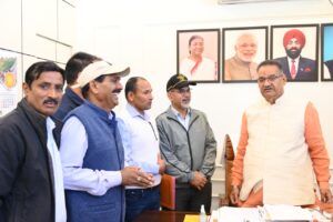 देहरादून, 12 नवम्बर: ग्राम्य विकास मंत्री गणेश जोशी से आज जनपद चमोली के कर्णप्रयाग क्षेत्र के खत्याड़ी गांव से आए एक प्रतिनिधिमंडल ने मुलाकात की। प्रतिनिधिमंडल का नेतृत्व क्षेत्र पंचायत सदस्य, सेवानिवृत्त सूबेदार लेफ्टिनेंट नंद किशोर थपलियाल ने किया।