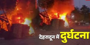 देहरादून: उत्तराखंड की राजधानी देहरादून के पटेल नगर कोतवाली क्षेत्र में बुधवार तड़के एक दिल दहला देने वाला सड़क हादसा सामने आया। यहां राजस्थान से टाइल्स लेकर आ रहा एक तेज रफ्तार ट्रक अनियंत्रित होकर सड़क किनारे खड़ी एक कार पर पलट गया। टक्कर इतनी जबरदस्त थी कि देखते ही देखते दोनों वाहन आग का गोला बन गए। गनीमत रही कि इस भयावह दुर्घटना में कोई जनहानि नहीं हुई।