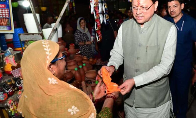 खटीमा में ‘स्वदेशी अपनाओ’ अभियान के तहत पारंपरिक दियों और स्थानीय उत्पादों की खरीदारी कर मुख्यमंत्री धामी ने दिया ‘वोकल फॉर लोकल’ का संदेश
