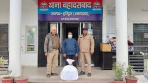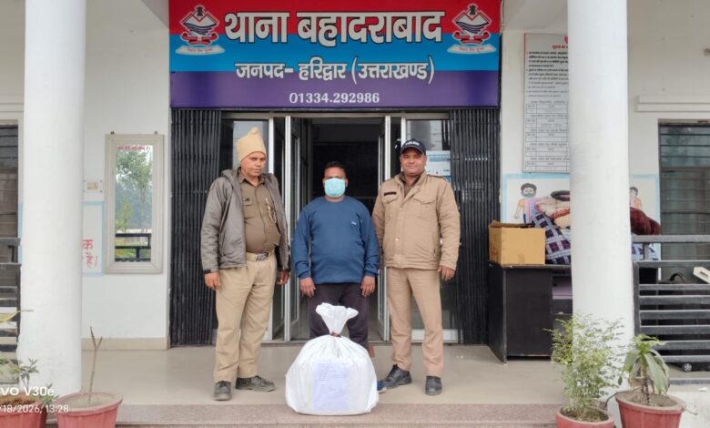 मुख्यमंत्री उत्तराखण्ड के “ड्रग्स फ्री देवभूमि मिशन” के क्रम में वरिष्ठ पुलिस अधीक्षक नवनीत सिंह के निर्देशन में प्रभारी निरीक्षक कोतवाली बहादराबाद के नेतृत्व में मादक पदार्थों की तस्करी के विरुद्ध चलाए जा रहे अभियान के दौरान दिनांक 18.02.2026 को महत्वपूर्ण कार्रवाई की गई। चैकिंग के दौरान नहर पटरी बहादराबाद के पास दो संदिग्ध व्यक्ति दिखाई दिए। पुलिस टीम को देखकर एक व्यक्ति मौके से फरार हो गया, जबकि दूसरे व्यक्ति को घेराबंदी कर पकड़ लिया गया। पकड़े गए व्यक्ति ने अपना नाम गोविन्दा पुत्र कशमीरा नाथ निवासी हरिपुर कला (आनन्दोश्वाश्रम), थाना रायवाला जनपद देहरादून, उम्र 30 वर्ष बताया।