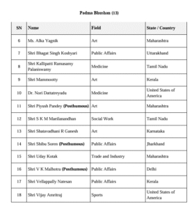 भारत सरकार ने गणतंत्र दिवस की पूर्व संध्या पर पद्म पुरस्कारों का एलान कर दिया गया है। 131 पद्म पुरस्कारों की सूची में 5 पद्म विभूषण, 13 पद्म भूषण और 113 पद्म श्री की घोषणा की गई है। देखें लिस्ट…..