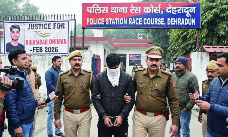 देहरादून। राजधानी देहरादून के रेसकोर्स क्षेत्र में हुई युवक दिगम्बर धीमान की हत्या के एक आरोपी को पुलिस ने गिरफ्तार कर लिया है। दिनांक 11 फरवरी 2026 को संतराम धीमान निवासी शास्त्री नगर, बसंत विहार द्वारा थाने पर सूचना दी की उनका पुत्र दिगंबर धीमान उम्र 28 वर्ष दिनांक 09 फरवरी 26 को घर से बिना बताए कहीं चला गया, काफी तलाश करने के बाद भी उसके सम्बन्ध में कोई जानकारी प्राप्त नहीं हो पाई। प्राप्त सूचना पर तत्काल थाना बसंत विहार पर गुमशुदगी क्रमांक- 07/26 में गुमशुदा दिगंबर धीमान की गुमशुदगी दर्ज की पंजीकृत की गई।