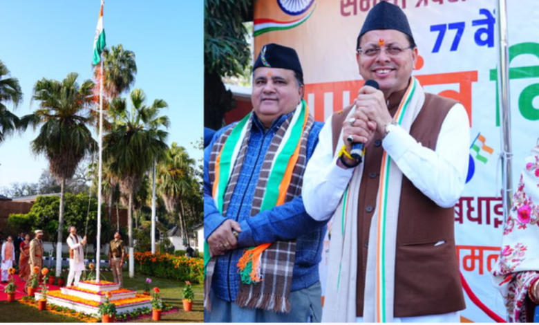 देहरादून: 77वें गणतंत्र दिवस के अवसर पर मुख्यमंत्री पुष्कर सिंह धामी ने सोमवार को मुख्यमंत्री आवास परिसर में राष्ट्रीय ध्वज फहराया। इस मौके पर उन्होंने उपस्थित अधिकारियों, कर्मचारियों और नागरिकों को संविधान की उद्देशिका की शपथ दिलाई और प्रदेशवासियों को गणतंत्र दिवस की शुभकामनाएं दीं।