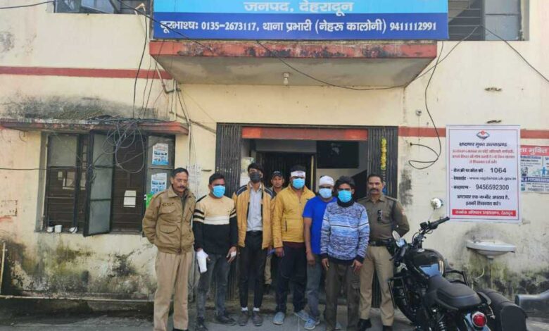 थाना नेहरू कॉलोनी, देहरादून : 17 नवंबर। थाना नेहरू कॉलोनी को सूचना मिली कि हिम प्लेस होटल के पास कुछ लोग आपस में झगड़ा कर रहे हैं और मारपीट की घटना में कुछ व्यक्तियों को चोटें भी आई हैं। सूचना मिलने पर पुलिस टीम तुरंत मौके पर पहुंची और सड़क पर हुड़दंग कर रहे 5 युवकों को हिरासत में लेकर थाने ले आई।